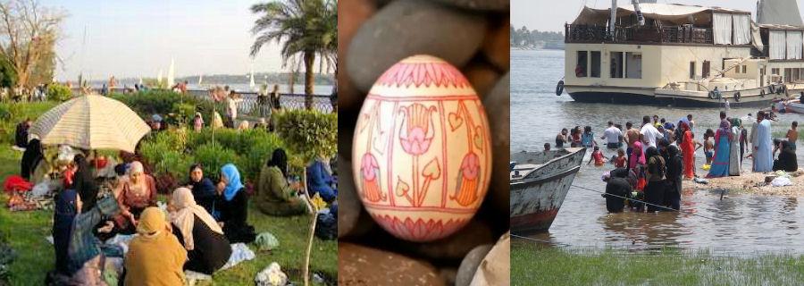 Lors de cette fête, les égyptiens envahissent les jardins, les parcs publics, les pelouses, les bancs et les champs où ils organisent des piques-niques géants. C'est un grand rassemblement national annuel qui compte plus de 60 millions de personnes à travers tout le pays. Les gens mangent pour l'occasion du fessikh (du poisson cru conservé dans le sel), des oeufs, des oignons, de la laitue, des pois chiches vert.